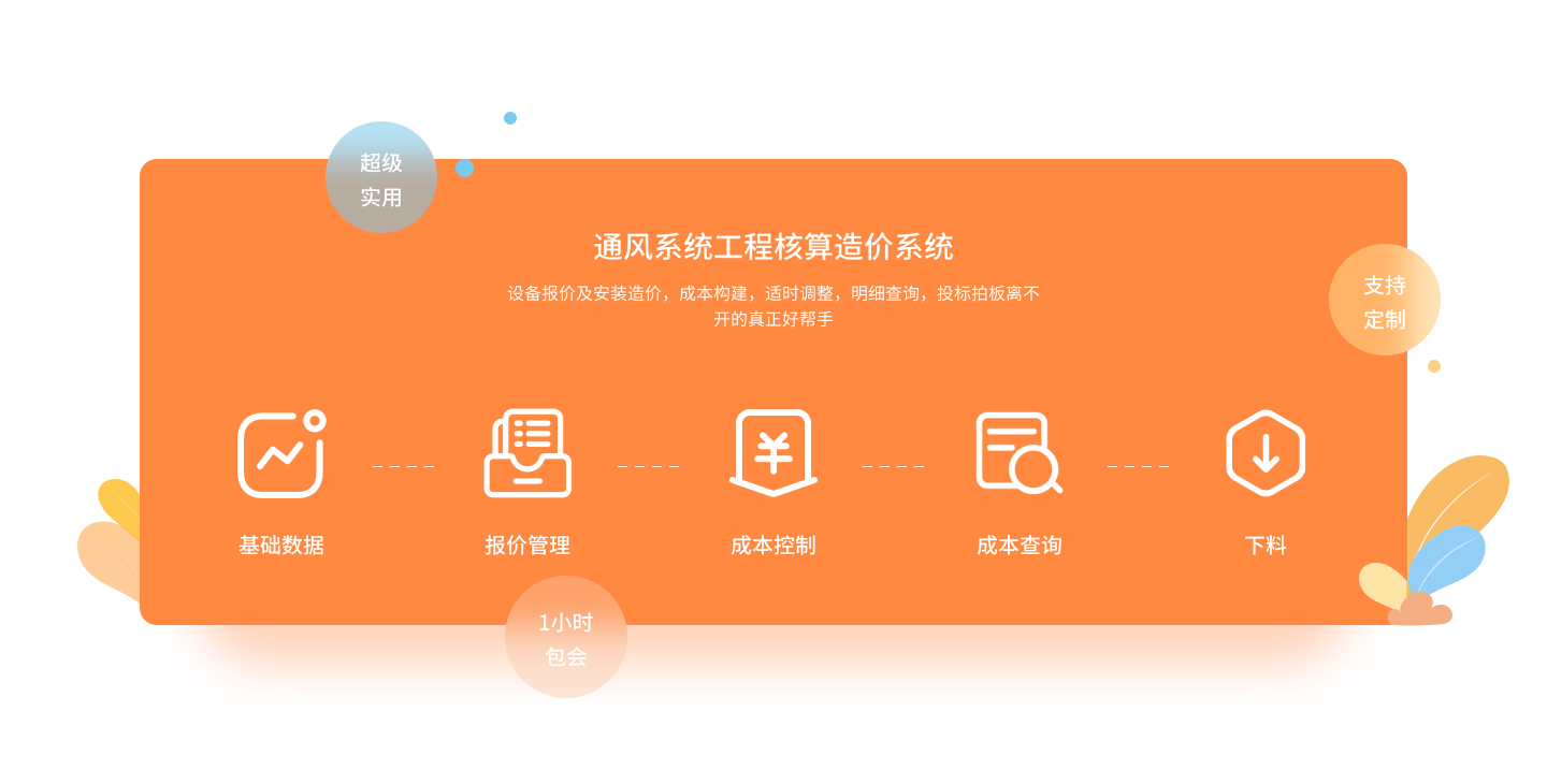 包括風(fēng)機(jī)閥風(fēng)口簡(jiǎn)易報(bào)價(jià)、風(fēng)機(jī)閥風(fēng)口成本核算報(bào)價(jià)、通風(fēng)管道安裝成本核算報(bào)價(jià)、風(fēng)口噴塑計(jì)算報(bào)價(jià)、盤管柜機(jī)成本核算報(bào)價(jià)、組合式空調(diào)機(jī)組核算報(bào)價(jià)、表冷器成本核算報(bào)價(jià)等軟件。